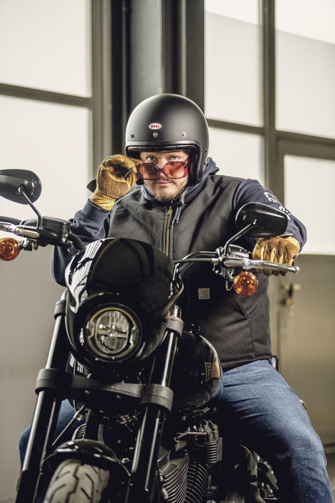 Ein Biker, der versucht, sich eine grossformatige Damensonnenbrille von Dick Moby unter den Helm zu zwängen, hat den Begriff «Fahrstil» eher falsch verstanden. Auf dem Sattel trägt auch Urech-Kunde Oliver Ammann lieber eine gut abschliessende leichte Sportsonnenbrille mit flexiblen Scharnieren.